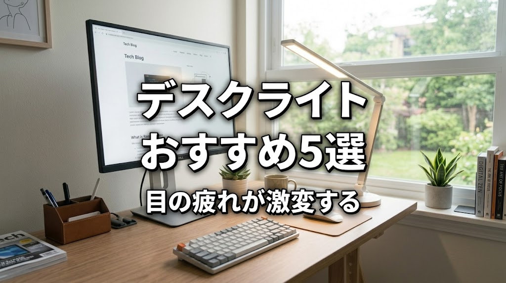 光がモニターに反射すると目が疲れます。アーム式のデスクライトなら光の角度を調整してモニター反射を防げる。または「モニターライト」(BenQ ScreenBarなど)なら構造的に反射しません。