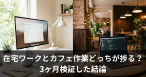 自分の在宅ワークデスクも、半年後にはこの状態でした。最初はスッキリしていたデスクの上に、ケーブル・メモ帳・イヤホン・マウスパッド・コースター・スマホスタンド・充電器……と、どんどんモノが増えていく。